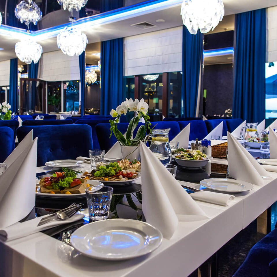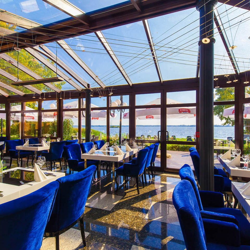 Największymi atutami restauracji w naszym Hotelu w Zegrzu jest wyśmienita kuchnia oraz widok na malownicze Jezioro Zegrzyńskie.